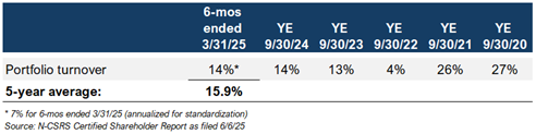 Turnover: Portfolio turnover is neither predictable nor sufficient to meet liquidity obligations. For the past five years, TIPWX has turned over 15.9% of its portfolio annually, well below the 20% annual pace implied by its 5% quarterly redemption policy. Meanwhile, performance has struggled.