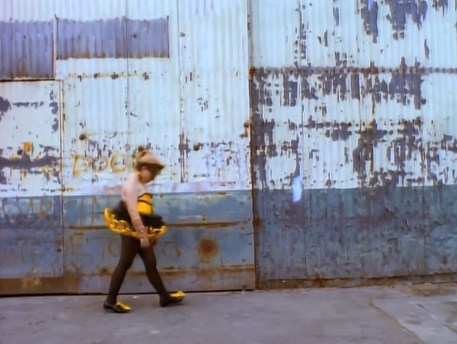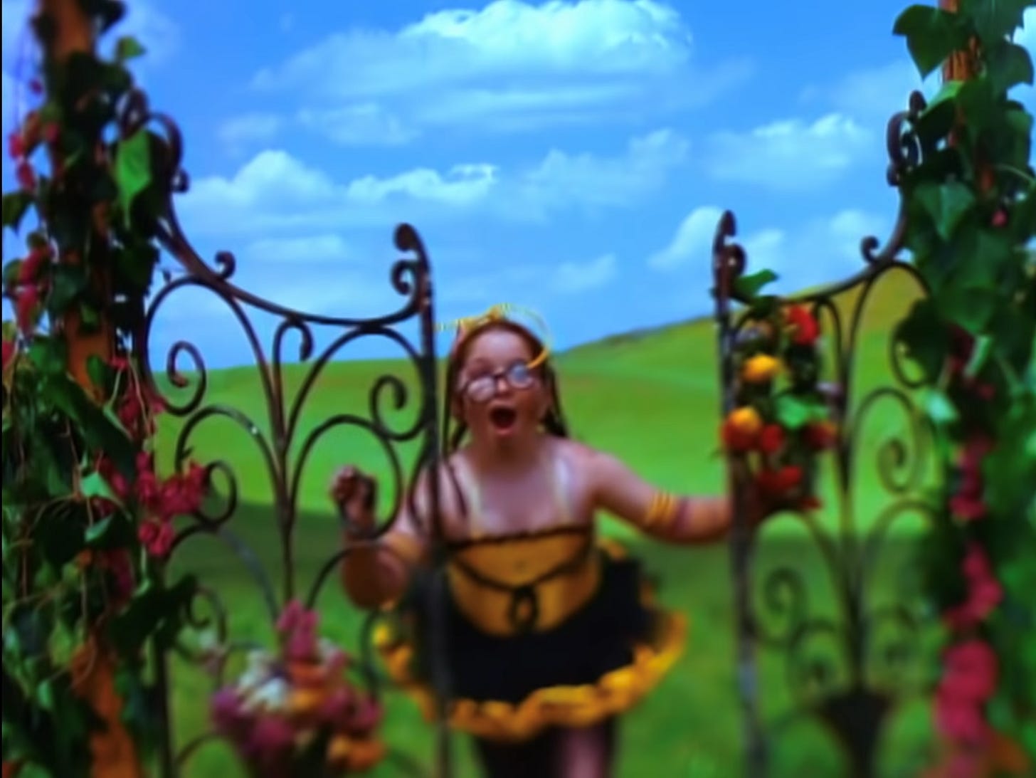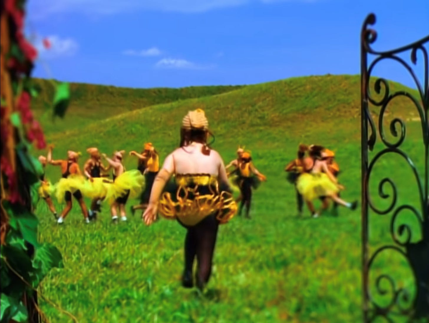 And then, suddenly, she happens upon an open field full of other girls wearing similar silly bumblebee costumes, all doing their own silly dances. She runs inside and dances among them, loved, included, and happy.