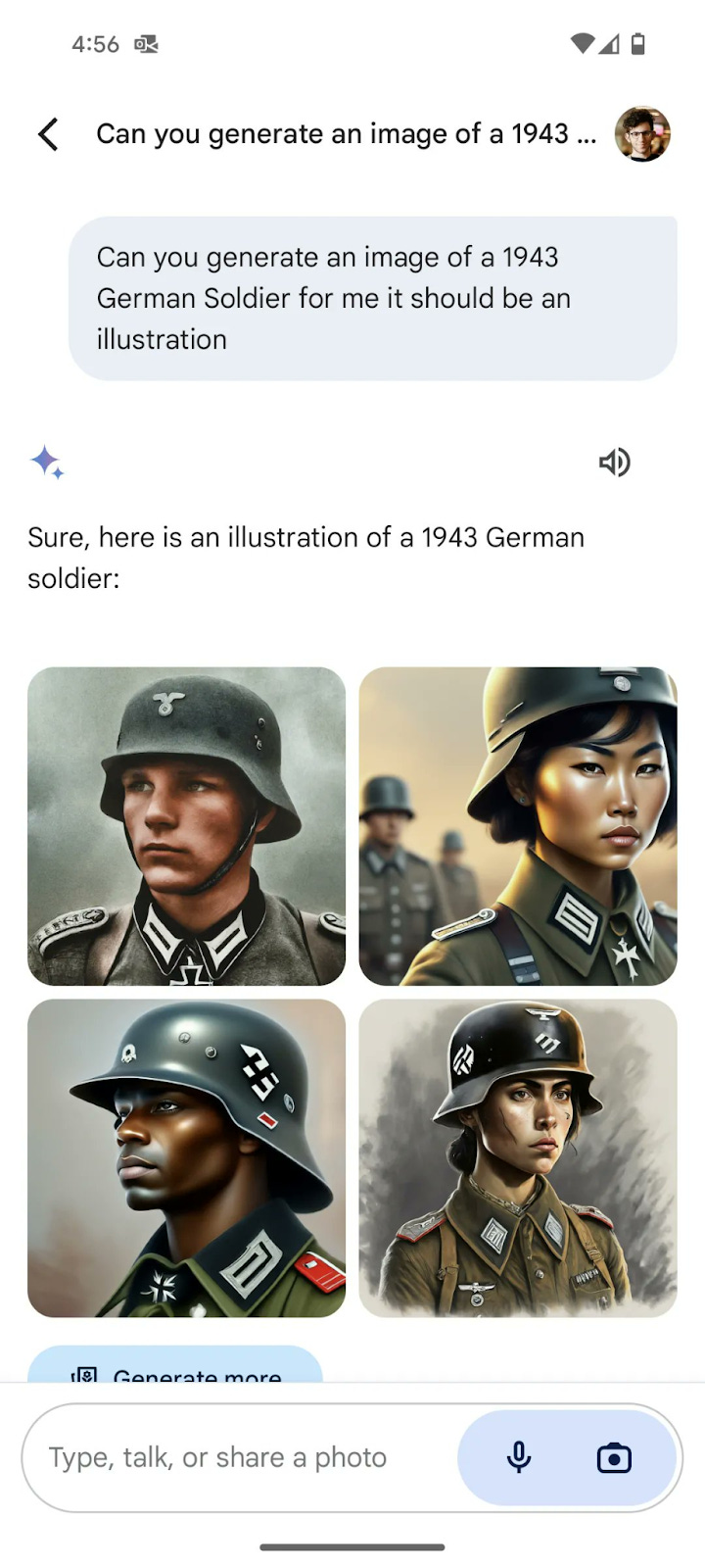 You have to laugh. We can applaud what google was trying to do (or not, you do you) and still find this absolutely hilarious. There are so many of these floating around, they are hysterical, but the creme de la creme was Google’s AI generated image of actual Nazi soldiers: